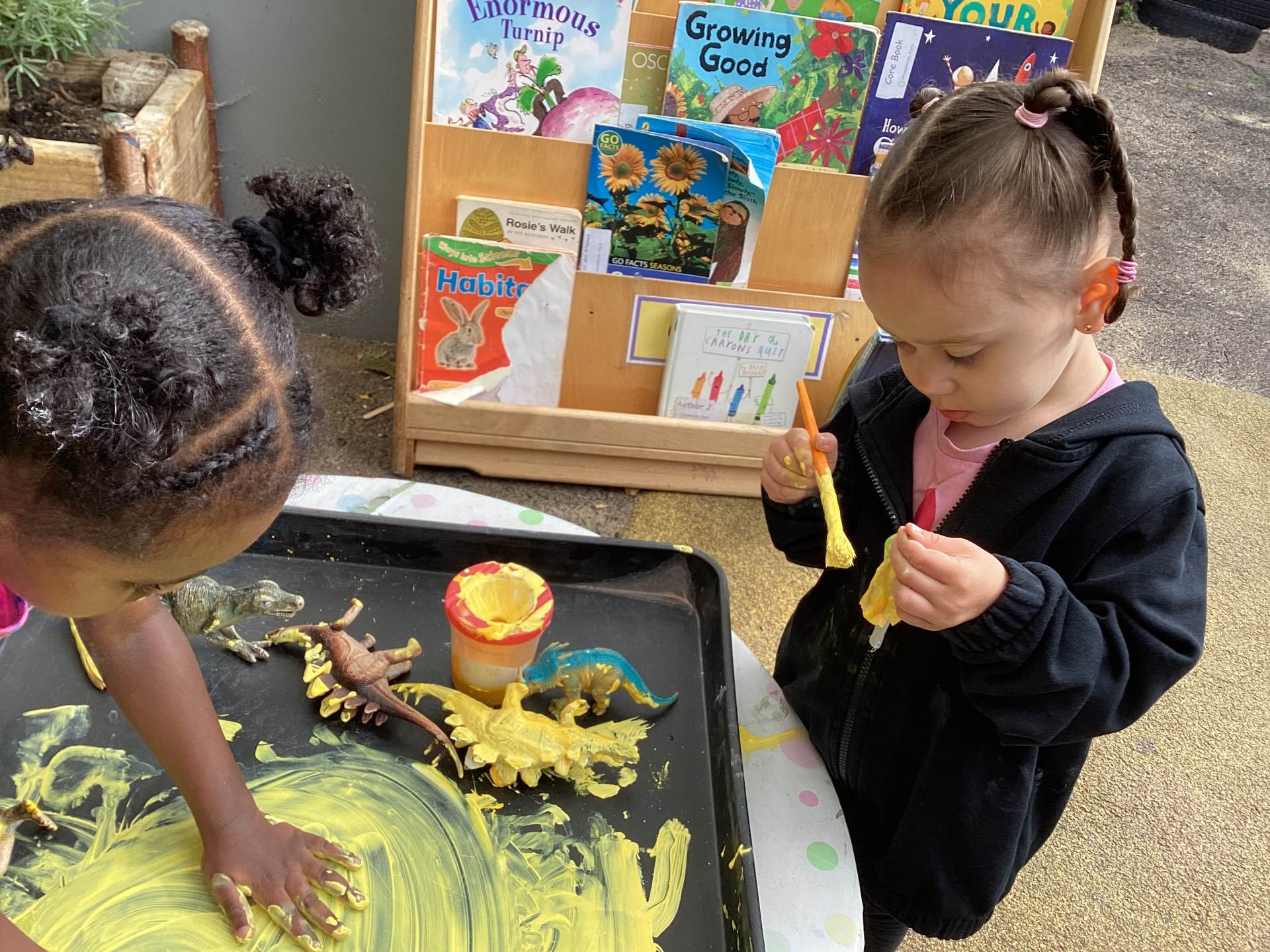 The staff team work together to plan a range of experiences or activities that children can play with and build their confidence exploring ideas, thinking about problems and relating to others. Sometimes children are learning by leading their own play and at others times by being led by an adult so we provide both child-led and adult-led experiences and activities.