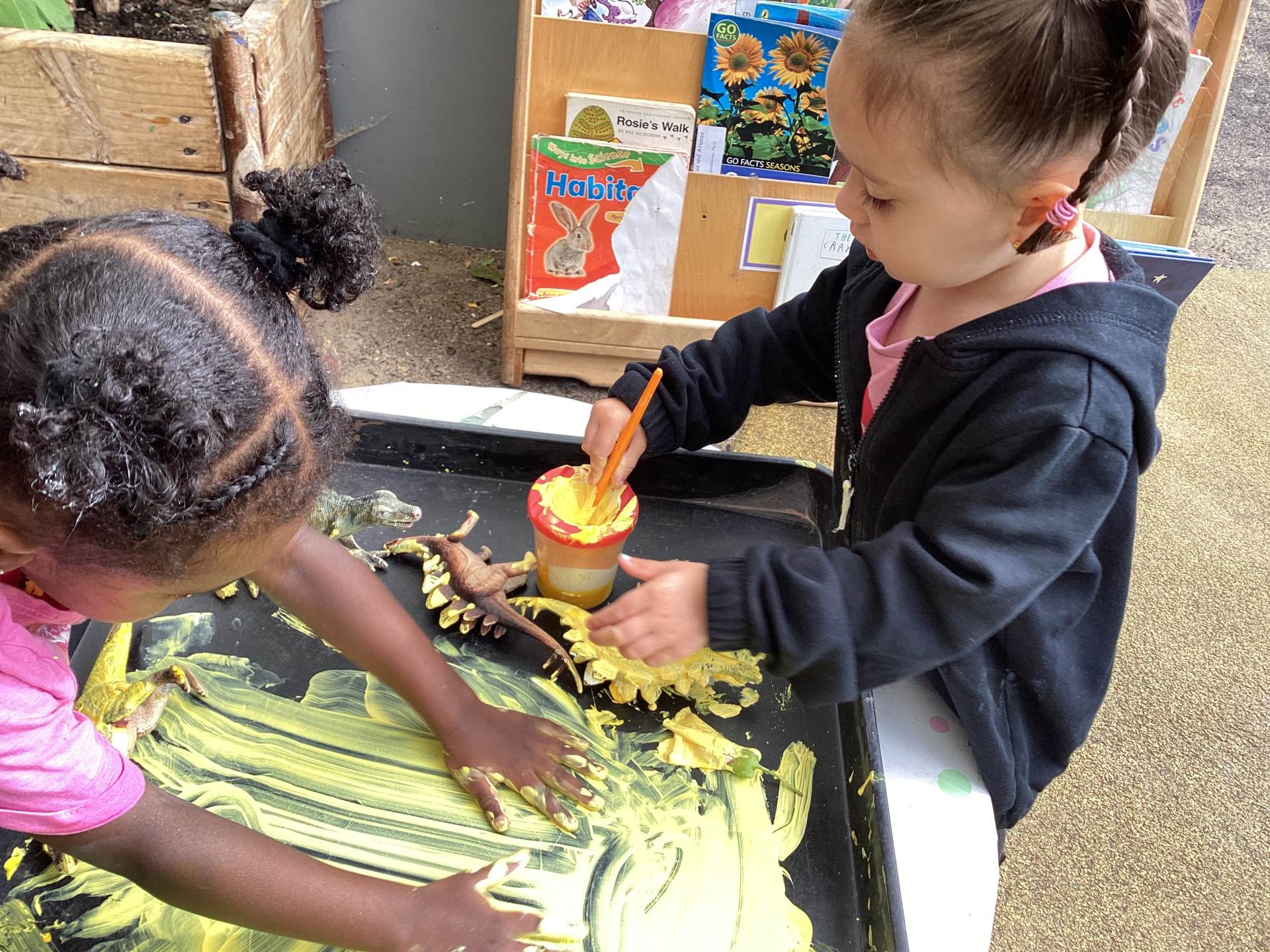 The staff team work together to plan a range of experiences or activities that children can play with and build their confidence exploring ideas, thinking about problems and relating to others. Sometimes children are learning by leading their own play and at others times by being led by an adult so we provide both child-led and adult-led experiences and activities.